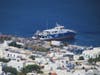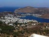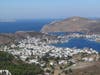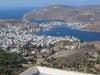 Β The view of Skala, the town with the harbor underneath, looked stunning as the Sun was hitting it from the West maximizing the contrast of the whitewashed homes with the deep blue color to the Mediterranean waters and the red soil of the landscape behind it.
