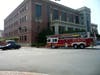 Building evacuated Thursday morning; ceiling fire in restroom extinguished.
