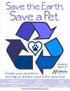 All you have to do is find a box or plastic bin, post one of our recycle flyers on it, and let people know you’re hosting an AAHS Save the Earth, Save a Pet recycle drive by handing out or posting additional flyers! You can do this at your workplace, school or within an organization during the dates you choose to host your drive—we just ask that you drop off your donations at one of our locations by Earth Day, which is Sunday, April 22, 2012.