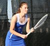 At number one singles, Freshman Jordan England won 6-3, 6-1 over Kelly Lingle. Katy Kane, at number two, made short work of Suzanna Pate 6-1, 6-1 and Caroline McElhannon, playing three, followed suit by blasting by Kathryn Young 6-1, 6-0. The Lady Warriors' fourth point came from the number two doubles team of Megan Morris and Ivy Do, who had little trouble enroute to a 6-1, 6-2 win over Thu Bni and Jennifer Clarin.
