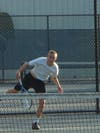 Will McDonald, playing in the number one position, won in straight sets 6-1, 6-1 over Max Wilson. Senior team leader Sam Ondo, playing number two, followed shortly thereafter with a hard-fought 6-3, 6-4 victory over Conner McFall, to put the Warriors within one point of the team win. Meanwhile, Conner Smith at number three singles and the number one doubles team of Zach Miner and Drew Horsley were in very tight matches that could have gone either way. However, it was Hunter Pritchard and Dan Madden, the resilient number two doubles tandem, that came through again with a key victory 6-2, 6-4, this time against Austin Dyer and Conner Kirkland, that clinched it for the visiting Warriors.