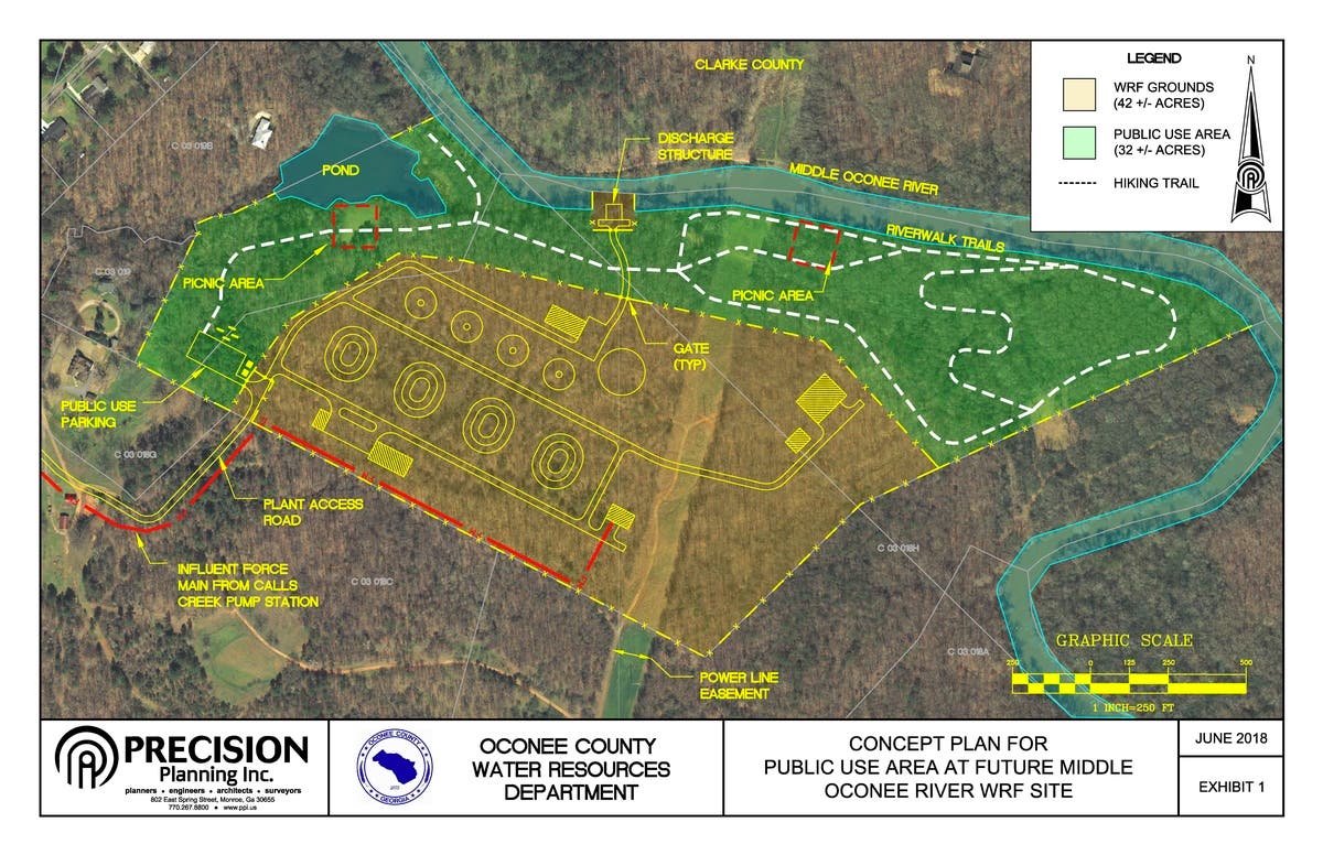 A future sewage plant on acreage Oconee County is purchasing on the Middle Oconee River might include picnic areas and walking trails if a concept plan presented at a Board of Commissioners Town Hall meeting Tuesday night is implemented.