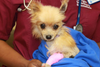 When Stephanie came to see little Honey Bear that 1st day, it was immediately apparent and shocking just how bad a shape she was in! The vet tech brought her out to Stephanie in a towel. Leaving foster mom and foster baby alone in the room to get acquainted, Stephanie’s first thoughts as she gazed down on the little fragile, hurting, abused body of a 4-lb. girl was, “Am I really up to this?” If you’ve ever taken care of an abused animal, you can relate to what Stephanie was feeling in those first few moments!