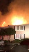 Firefighters arrived to find heavy smoke and flames showing from the second floor and attic of the two-story apartment building, with flames already breaking through the roof.