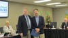 Dan Baker, with Georgia Commerce Bank and Mark Ogden, Peachtree Booster Club Hockey director, receive proclamations at City Council meeting.