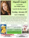 Merrill has performed on Broadway and in Europe and will share some of her favorite songs, included are songs from films like "The Sound of Music" and "My Fair Lady" as well as the films of Shirley Temple and Alice Faye.