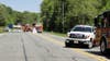 The accident, involving a gas tanker and a white Jeep Cherokee, occurred shortly after noon.
