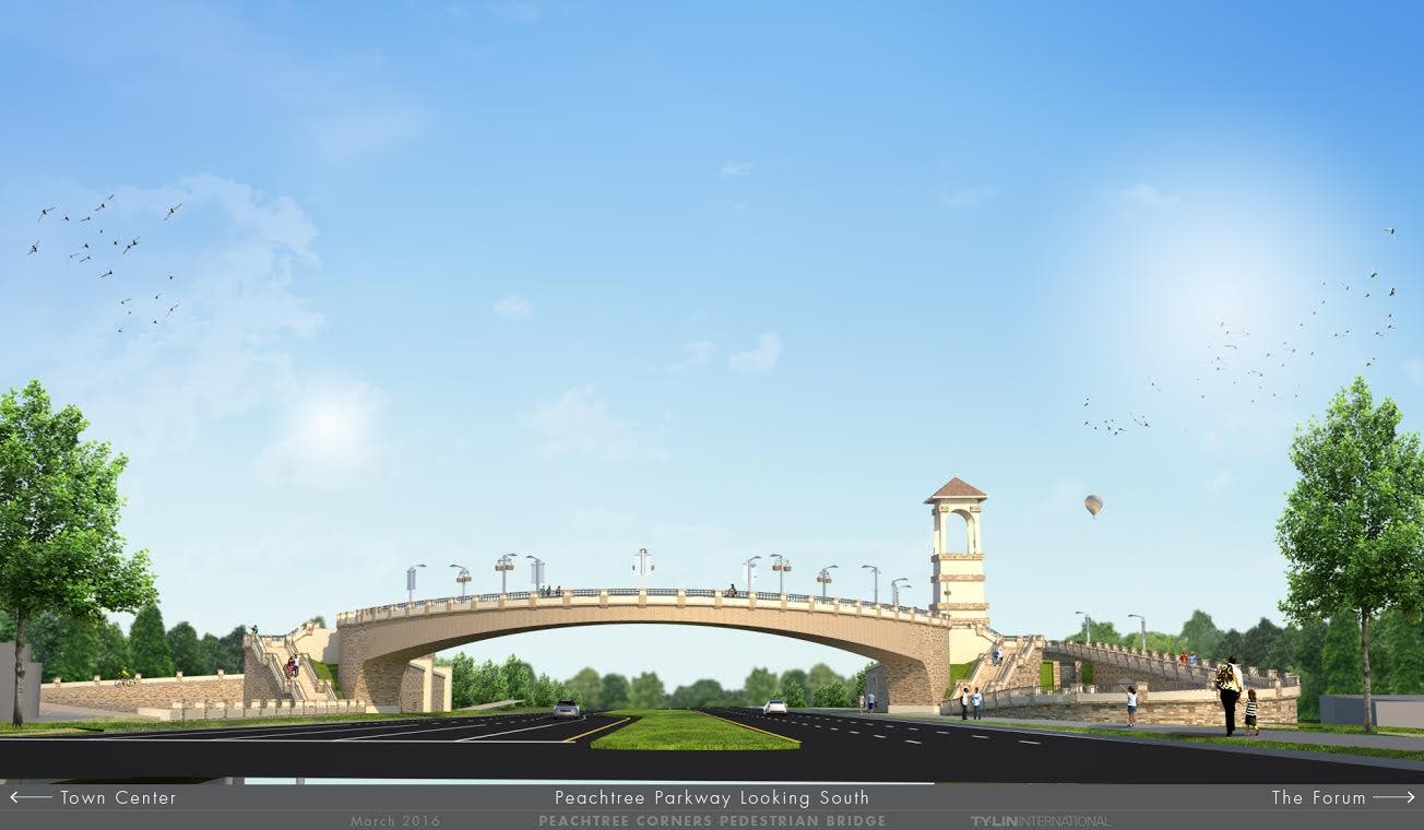 Announced in January, the bridge would provide a walkway over Peachtree Parkway and connect Town Center with the The Forum.