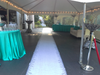 I used 3 tents for her event and created a movie star theme in the lounge area.I had pink champagne flowing in the fountain,and stanchions at the entrance of the tent. I also created a dramatic look with a long white runner and a vintage sofa for guests to sit on. All the posts on the tents where draped to create an elegant look, along with twinkle lights around the tents. I decided to use an accent color that was one of her favorites, and I found a beautiful black and white cake. I floated battery operated lily pads in her pond at dusk and it was magical.