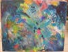 Her color sense and use of mixed media obviously works.Β Her paintings hang in the homes of a number of private collectors and she now teaches a class twice a month.Β