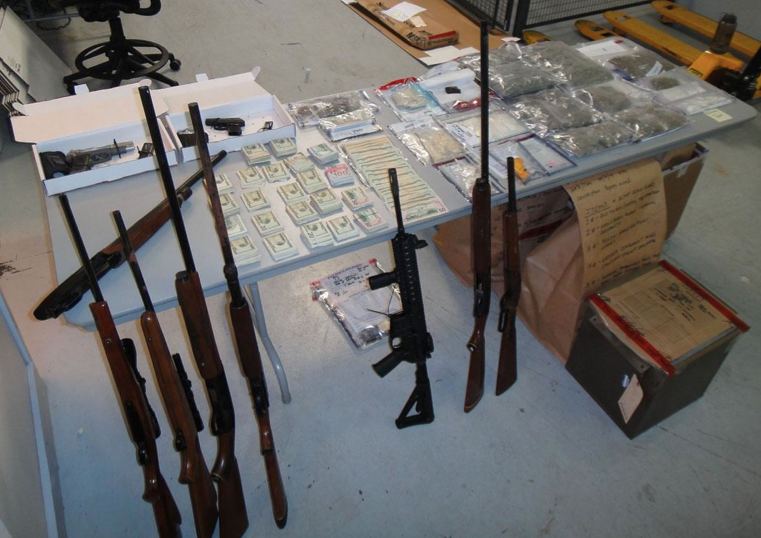 Seized during the operation were 3.5 lbs of high-grade marijuana, 80 grams of “wax” (concentrated THC), 740 Alprazolam (generic for Xanax) pills, 11 guns, including an AR15 rifle, two handguns and five shotguns, five vehicles and $29,000 in cash.
