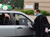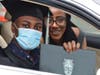 The drive-thru graduation celebration was held throughout the day on Tuesday, May 26. Students dressed in their caps and gowns, and arrived as assigned times in a car with their families, lined up in the stadium parking lot and processed in their cars to Shaw, where their names were announced and photos were taken while social distancing. Students were given their diplomas, diploma covers, Hornet Notes, a lanyard from student government and an alumni sticker.