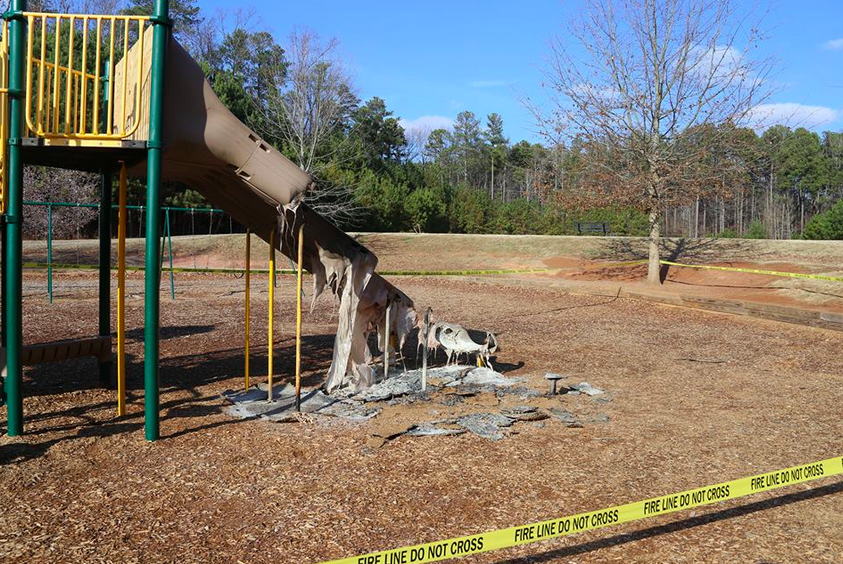 When officers arrived onto the scene, they observed playground equipment on fire. The city’s Fire Department responded, and the blaze was eventually extinguished.