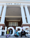 Photo 1: Members of Team Roswell, which is made up of city of Roswell employees, show that “Hope lives here!” at Roswell City Hall.