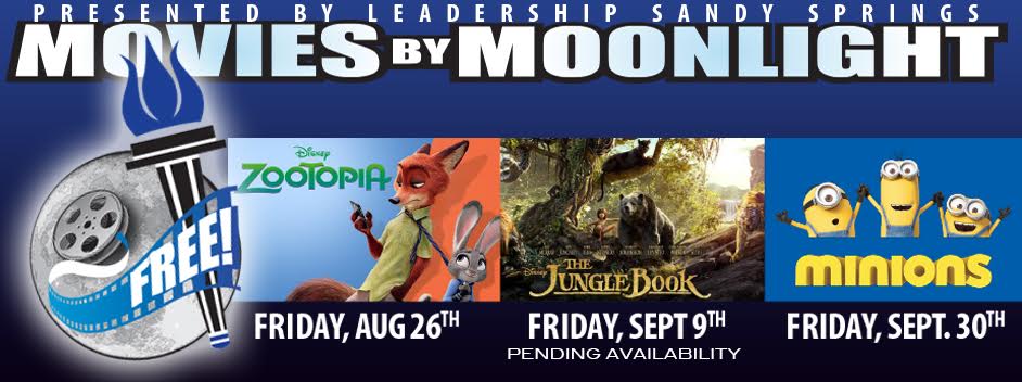 Sandy Springs, Ga, - Now entering its 12th year, Movies By Moonlight (MBM), brings back the nostalgia and fun of the outdoor cinema! Known as the “best block party in Sandy Springs”, this FREE event will again span three Friday evenings of August 26, September 9 and September 30. The event is sponsored by Leadership Sandy Springs, a professional leadership organization that develops, educates and connects community and business leaders in the Sandy Springs and Central Perimeter area. Every summer, LSS delivers a quality, community-building experience through this full evening event. Shown on a huge inflatable screen, a family-friendly film is projected to an audience for viewing on the terraced lawn of the Activity Center at Sandy Springs United Methodist Church. Prior to the screening, numerous vendors and food trucks will offer entertainment, food, activities, and community spirit.