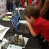 Photo 3: Student exploring coding at Master sponsor State Farm’s exhibit.