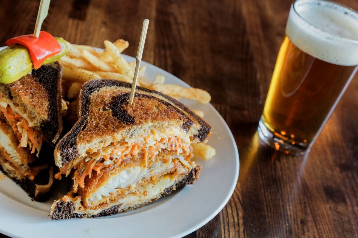 Photo: Dantanna's Frueben, which features fried, blackened or grilled tilapia, cabbage slaw, Swiss cheese, Russian dressing on grilled marble rye bread. Credit: Caren West PR, LLC