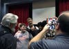 Photo 3: Drama students Zachary Maycumber, Brian Galladrdo-Martinez and Myron Parker have picture taken with John Schneider by department chair James Landreau while professional photographer Doug T. Mills looks on, along with producer and CineFlix partner Alicia Allain.