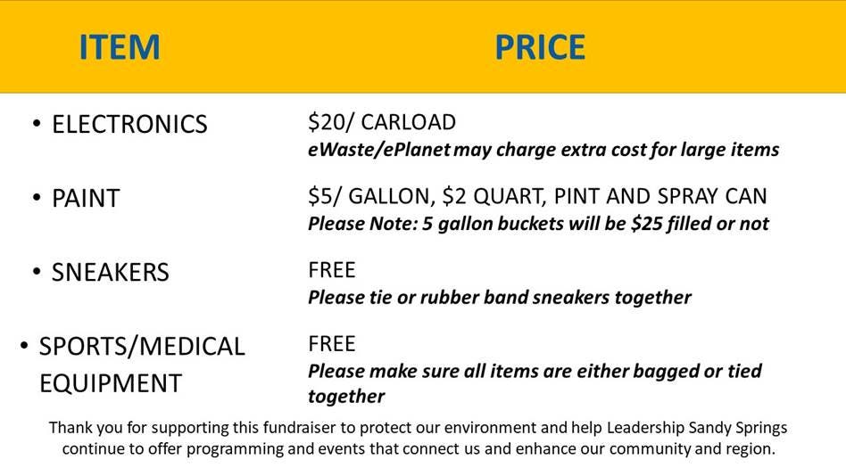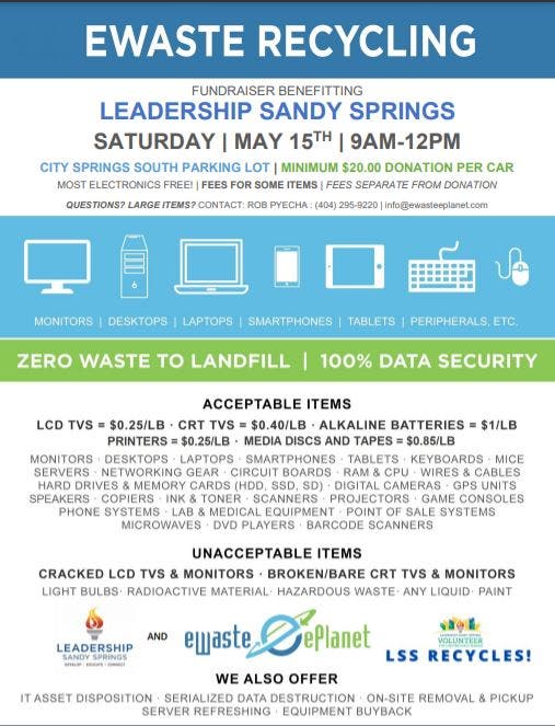 Leadership Sandy Springs Recycles is a community-wide drive up and drop off recycling event set for 9 a.m. to noon on Saturday.