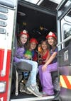 Photo 2: In the Sandy Springs Fire and Rescue truck are Maeve Williams, Su Lin Cox, Warren Cox and Saena Cox.