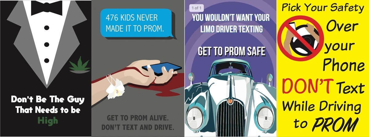 Five students submitted winning poster entries created in Cam Lupiani’s advanced graphics class. The students urged their peers to remain sober, not to drive intoxicated and to refrain from texting. One graphic used to warn their peers said, “476 kids never made it to prom.”