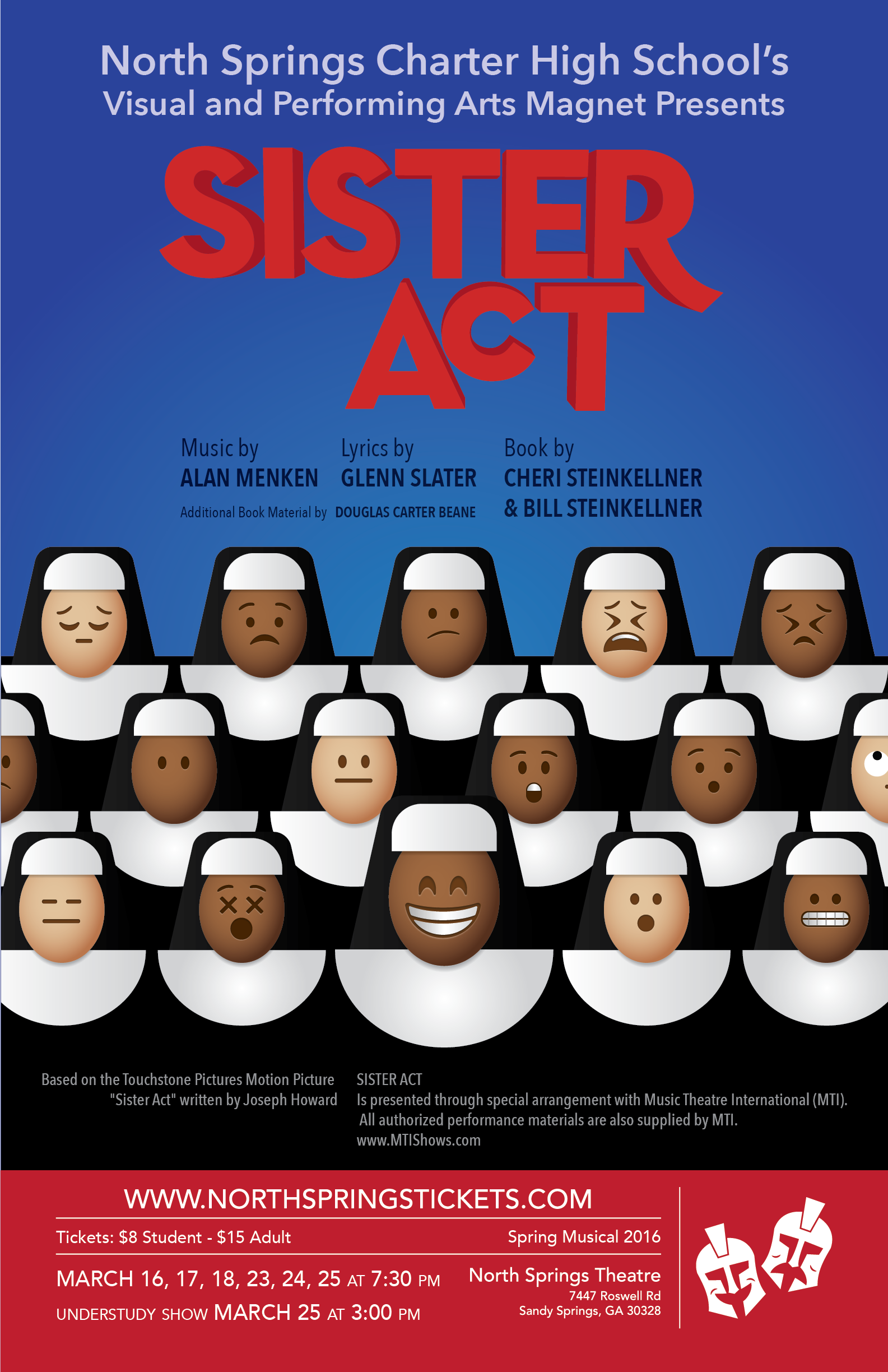 From North Springs Charter High School: North Springs Charter High School’s spring musical is always widely anticipated and this year, the school’s theater magnet is proud to present Sister Act, a musical based off the popular movie made famous by Whoopi Goldberg.