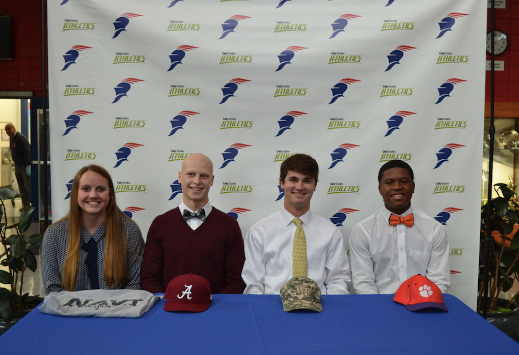 Four students at the school in Sandy Springs will play sports as they embark on their post-secondary education paths.