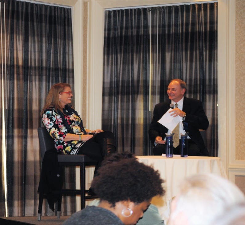 Unlike typical luncheons that involve a podium, Larson sat down with SSPC 2015 Chairman, Chris Burnett, for an informal Q&A and concluded with letting the audience ask questions. The luncheon was attended by approximately 120 guests and was sponsored by Kaiser Permanente.