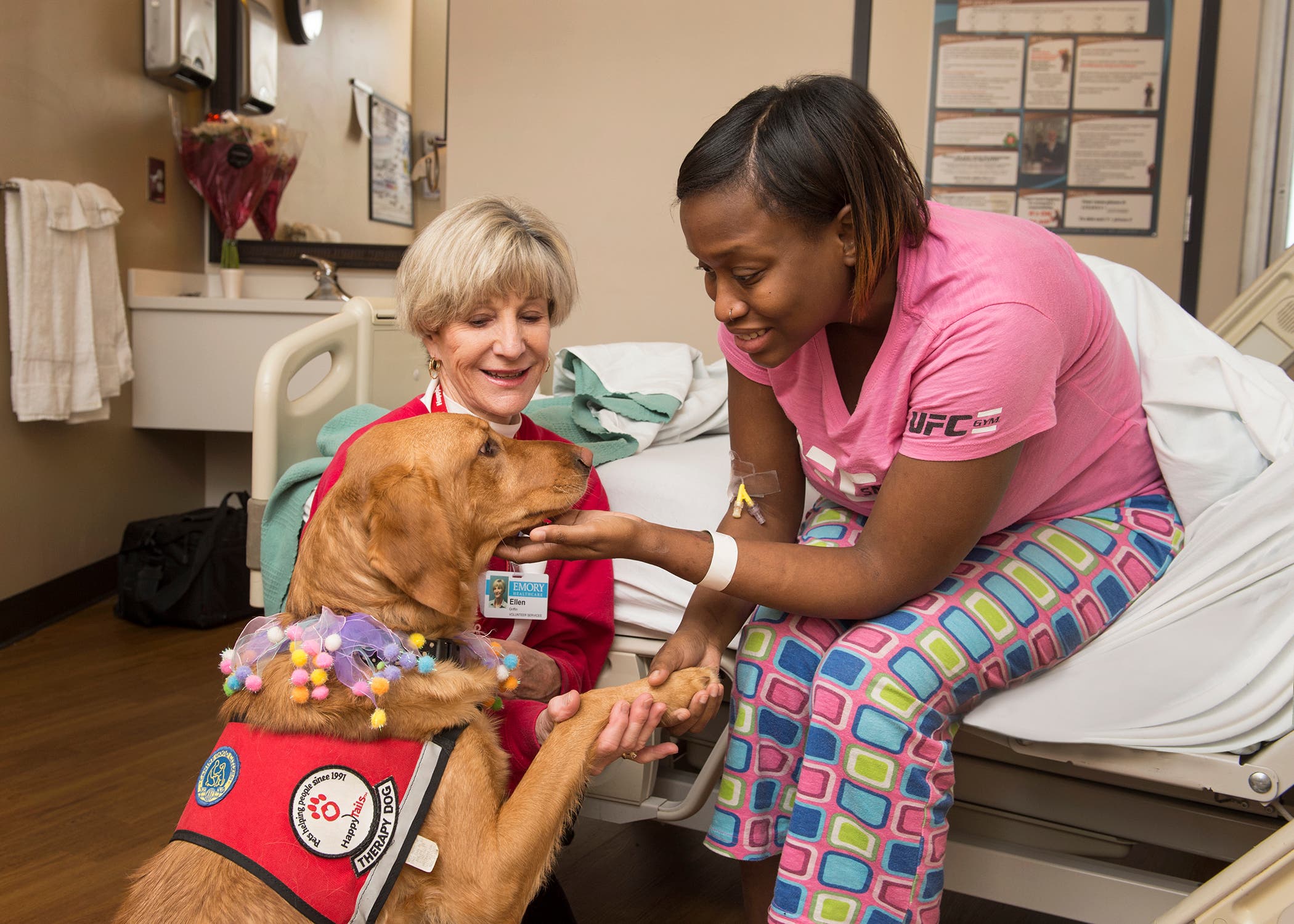 "These animals provide unconditional love and acceptance to ease the pain for those patients who miss home, their family or pets," says Heather Dexter, CEO of Emory Saint Joseph's.