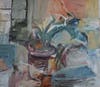 Blalock's show includes 13 large abstracts and still life paintings, all in oil and all produced in 2016.