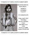 Uniquely Us Kids & Teens Fashion Show promises to deliver a night filled with F.A.M.E. -->Fashion, Art, Music and Entertainment. We encourage all of you to be great, to be poised, to be Unique!! This exciting family event is a BIG "TO DO" and the venue will be filled with exciting products & give-a-ways. Excitingly we will have local talent scouts in attendance looking for new talent to add to their rosters.