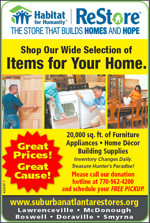 Habitat for Humanity ReStores provide funds for your local Habitat for Humanity by selling donated new and gently-used furniture, appliances, cabinets, and home goods. Shop, Donate, or Volunteer with us at any of our five suburban Atlanta locations SuburbanAtlantaReStores.org. Attend one of our monthly Volunteer Information Sessions, held the first Saturday of every month. For more information, please contact our Volunteer Programs Manager, Mary Robeck, mrobeck@habitat.org, 770.415.1636.