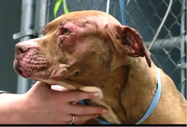 Lanier stuck the torch through a crack at the top of the doghouse, and the dog suffered burns on her face and over 60 percent of her body before managing to escape the doghouse. “Royalti,” a year-and-a-half old female pit bull, belonged to Lanier’s brother and sister-in-law.