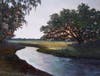 The light and open painting over the bed adds to the open and airy master bedroom with its private screened porch.