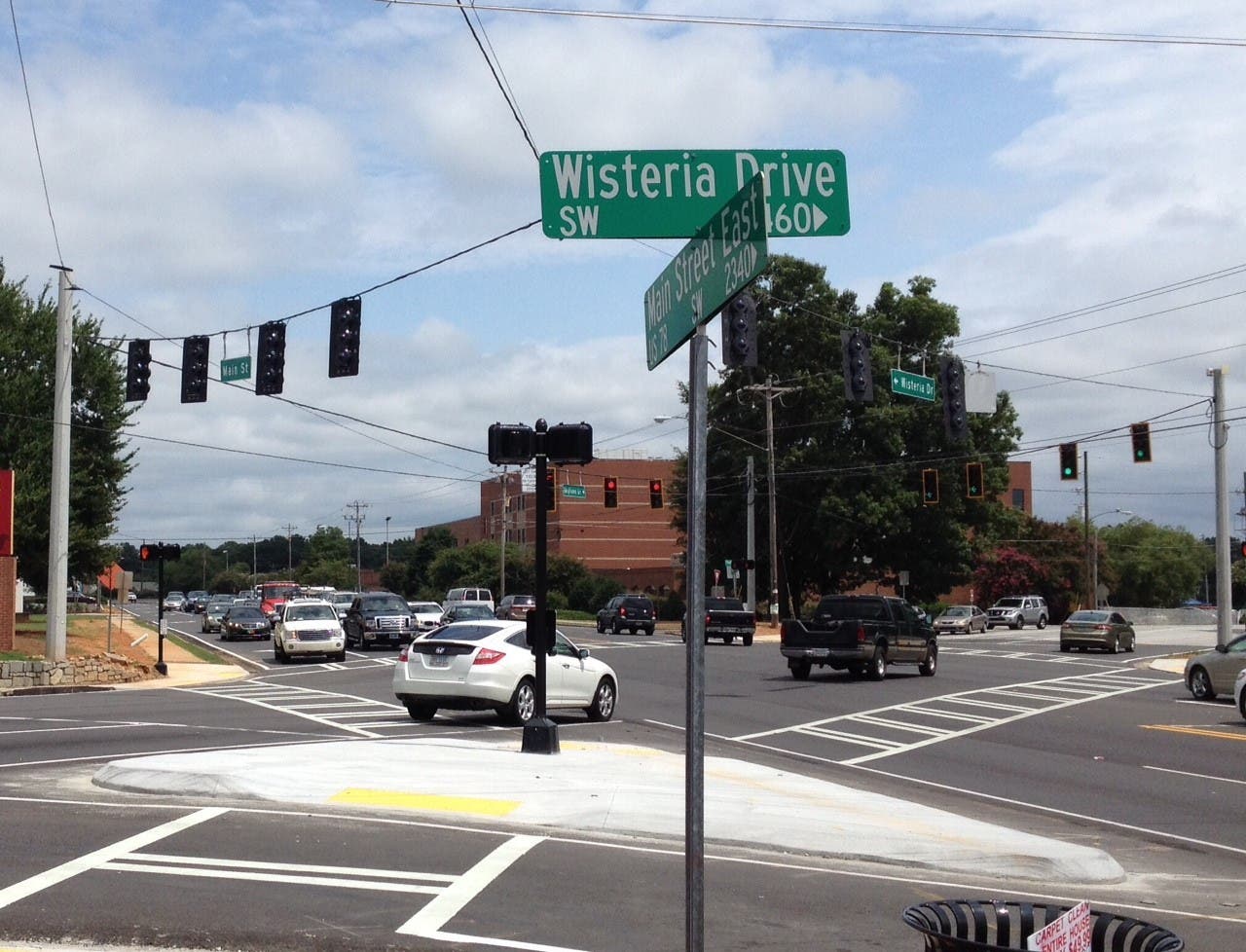 The intersection has been the site of many near misses between students and vehicles and last school year a Snellville police car came into contact with a student who darted from traffic on Wisteria Drive. Now new crosswalks and a pedestrian island with push-button walking signals will help alleviate these problems thanks to the joint project between the Georgia Department of Transportation and the Gwinnett Department of Transportation.