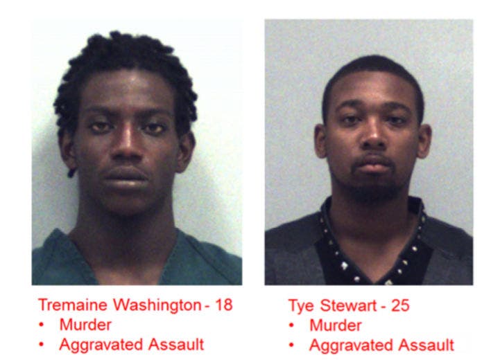 Stewart, of Snellville, is charged with murder and armed robbery in the case. Washington faces charges of murder and aggravated assault.