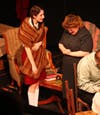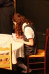 The cast makes it easy to become invested. Kaitlin Moore, 16, is very strong in the role of Anne Frank. She manages to convey the youthful certainty of the 13-year-old voice and the awkwardness of the 13-year-old’s interactions with all the adults in the attic. Dave Martin is playing Otto Frank in his first acting role. He has exactly the right balance of strength and apprehension. Chris Brisendine is perhaps the scene-stealer, with her portrayal of the larger-than-life Mrs. Van Daan. Unable to shed her attachment to her possessions and her position in society, Brisendine gives Mrs. Van Daan the superciliousness needed. Lamar Hutchinson plays Peter Van Daan who is as introverted as his mother is extroverted. Hutchinson shows the timidity with which Peter deals with his parents, but he begins to grow into a man as his friendship with Anne continues.