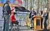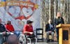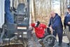 Cpl Todd Love, a triple amputee from Afghanistan, get to make first cut on acerage for new home.
