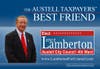 With his focus on tax and spending issues, he uses the slogan,Β βThe Austell Taxpayerβs Best Friend,β after being described as such in an endorsement from former Congressman from Cobb County, Bob Barr. Former Cobb County Chairman Bill Byrne, current Austell City Council members Trudie Causey and Martin Standard and Austell City Council have also endorsed Lamberton.