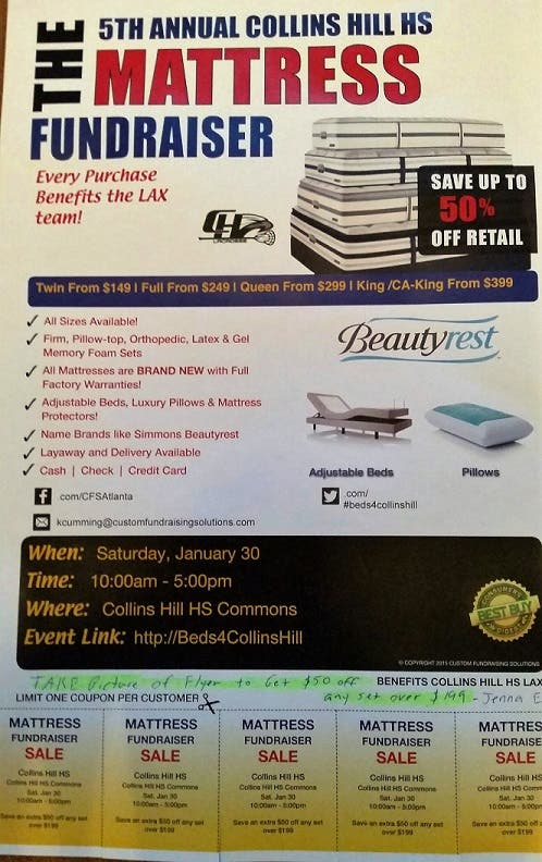 Collins Hill HS Lacrosse Mattress Fundraiser.