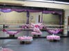 Co-founder and artistic director Ms. Bernie (as she’s called) welcomed the princesses and kings into the party room, which was lavishly adorned with beautiful purple draping and giant pink bows. Floor-level tables covered in pink and set with fine china elegantly dotted the room, and the guests were treated to magic pink tea and festively decorated Valentine’s cookies.