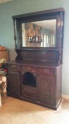 - Antique English Sideboard, Circa Late 1800’s: Unknown maker. Dimensions - 77h x 50w x 21d $900.00