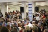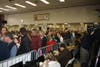 However, closer to 2,000 people showed up, according to the fire marshal, and some 500 people were forced to stand outside in the cold. No pancakes for them, but speakers were set up so they could hear what was going on inside.