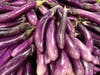 Slice the Chinese eggplant at an angle into ½ inch pieces. Discard the top and the end pieces. Mix the olive oil and the sesame oil together. Paint both sides of the eggplant pieces with the oil mixture. Salt and pepper both sides. Grill the eggplant about 2-3 minutes per side or until grill marks appear.