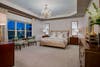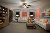 Upstairs, an opulent master suite includes a trey ceiling, sitting area, large wall of windows and luxurious bath. The huge walk-in master dream closet includes a closet organization system and large center island with pendant lighting. Upstairs also features three additional bedrooms with one serving as a cheery homework room with bright colors and an oversized framed chalkboard. The large media room is a mix of a little modern and retro with comfortable setting. This fun media room features retro art and textured walls.