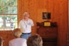 The Hardy family came to the ceremony to dedicate a church pew from the Tucker Congregational Church that once stood on Main Street in the late 1890s. Hugh Simpson Lewis gifted the pew to their friends and neighbors, the Hardy family, and now the Hardy family has gifted the pew to the Tucker Historical Society.