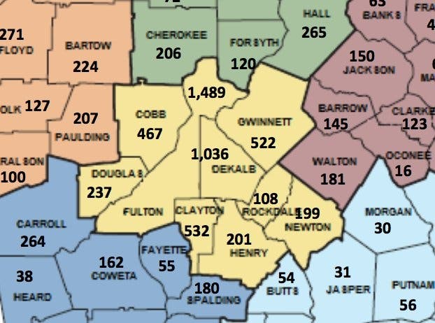 The below map lists the number Georgia Sex Offenders By County. The Georgia Bureau of Investigation reports the number of out-of-state offenders is 6,759 and incarcerated offenders is 4,603, for a total of 31, 480 sex offenders. Incarcerated offenders have been removed from each counties' total.