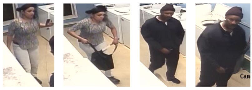 The couple made off with $1,500 in quarters from dryers at an apartment-complex laundry in Tucker, police say.