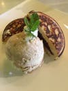 Japanese Pancakes Infused with Honey and Sweet Red Bean Filling, Served Chilled with a Side of Cinnamon Brown Sugar Ice Cream