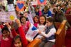 Hundreds of students, staff members and community supporters cheered the educators on Tuesday at a special ceremony.